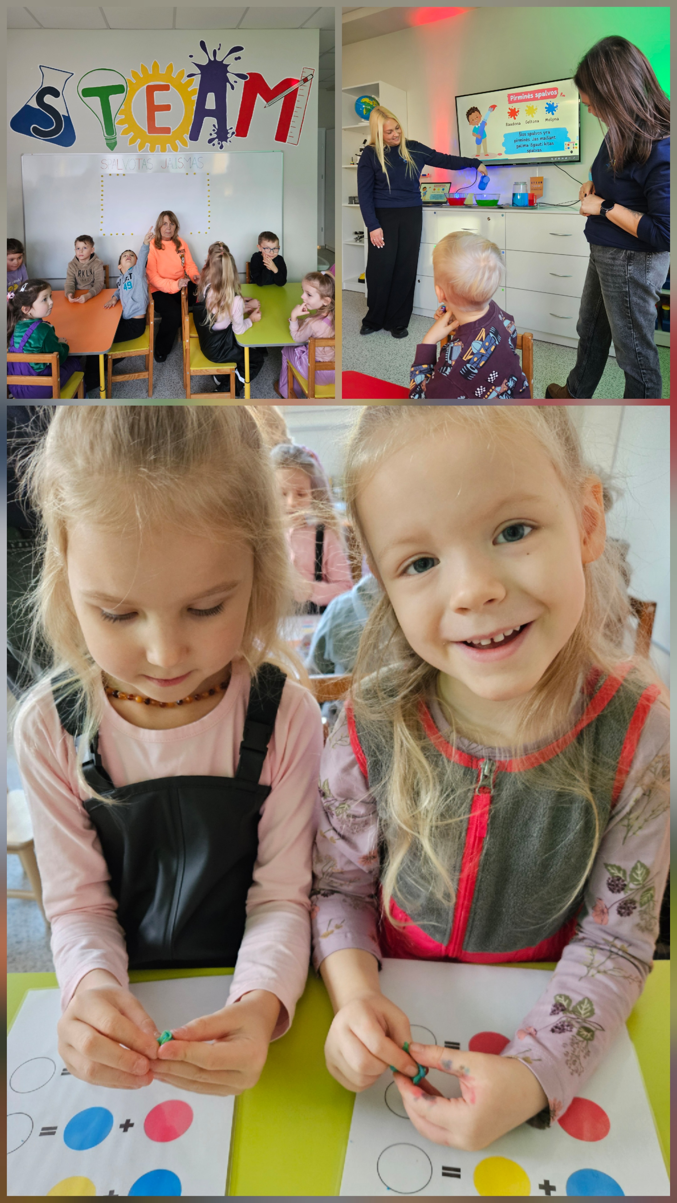 Refleksija: Vaikai dalyvavo įdomiose ir kūrybiškose STEAM veiklose, kurios skatino jų smalsumą, kritinį mąstymą bei bendradarbiavimo įgūdžius. Eksperimento „Mini ugnikalnis“ metu vaikai stebėjo cheminę reakciją, mokėsi tyrinėti reiškinius ir daryti išvadas. Veikloje „Programuok robotuką“ lavino loginį mąstymą ir susipažino su programavimo pagrindais. „Statybininkų iššūkis“ skatino vaikus konstruoti, ieškoti sprendimų bei dirbti komandoje. „Kūrybinės šviesos“ veikloje vaikai pasinėrė į šviesos ir šešėlių žaidimus, lavino vaizduotę ir kūrybiškumą. Galiausiai žaidimas „Skaičių lenktynės“ padėjo linksmai ir aktyviai įtvirtinti matematinius gebėjimus. Šios dirbtuvės buvo ne tik smagios, bet ir vertingos ugdymo prasme – vaikai patyrė tyrinėjimo džiaugsmą, ugdėsi svarbius XXI a. įgūdžius.