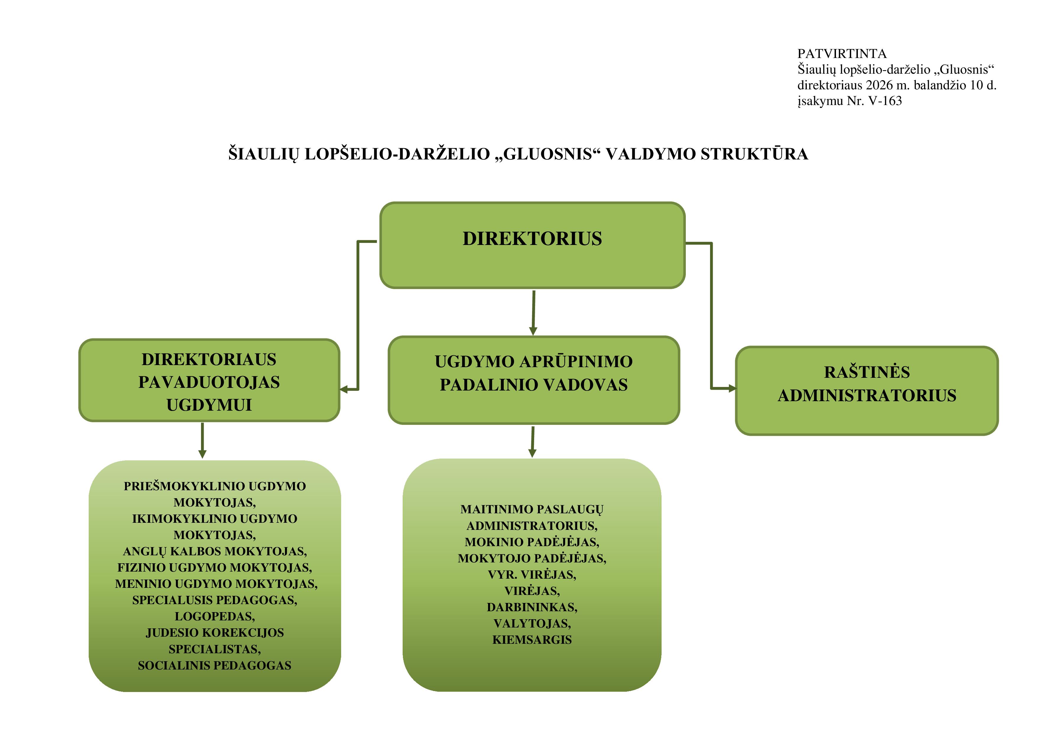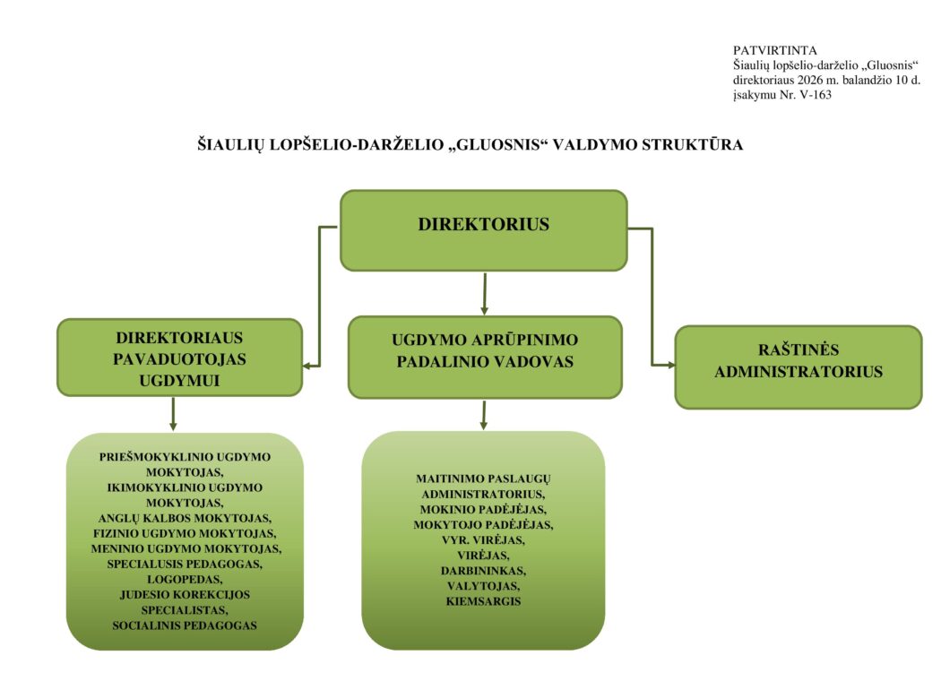 Šiaulių lopšelio-darželio „Gluosnis“ 2024 m. valdymo struktūra atnaujinta.