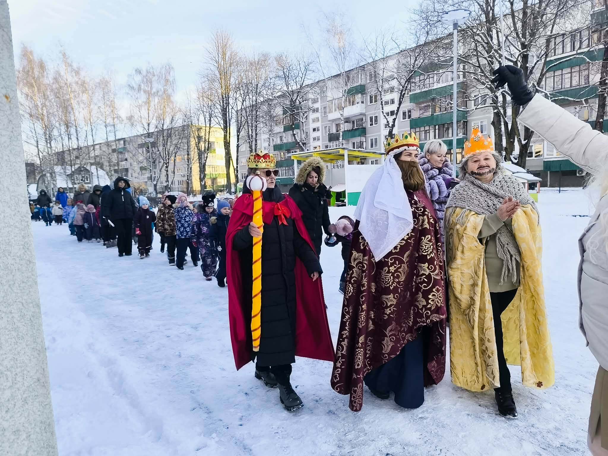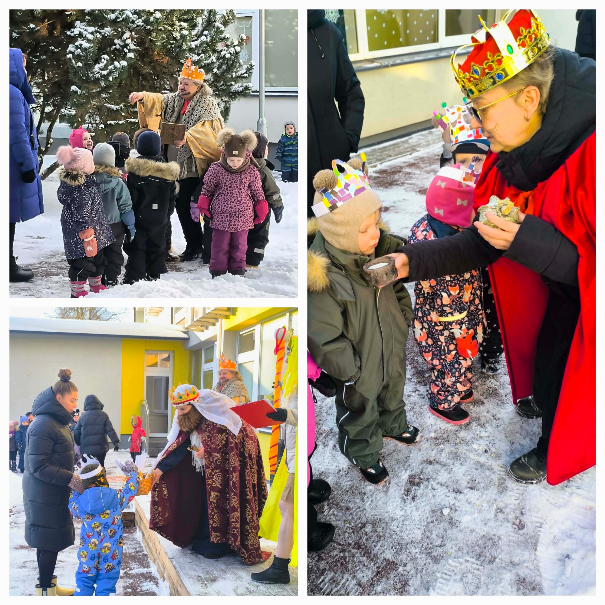 Šiaulių lopšelyje-darželyje ,,Gluosnis“ vyko smagus ir šventinis rytmetis „Trys Karaliai“. Visa darželio bendruomenė susirinko jaukiame darželio vidiniame kiemelyje, kur visų laukė ypatingi svečiai – trys Karaliai ir Žvaigždė. Žvaigždė linksmai pasveikino visus su švente, o Karaliai išdalijo dovanas ir priminė, kaip svarbu dalintis gerumu, draugyste bei šiluma. Kupini džiaugsmo, visi kartu – sekdami paskui Žvaigždę ir Karalius – leidosi į linksmą šventinę eiseną aplink darželį.