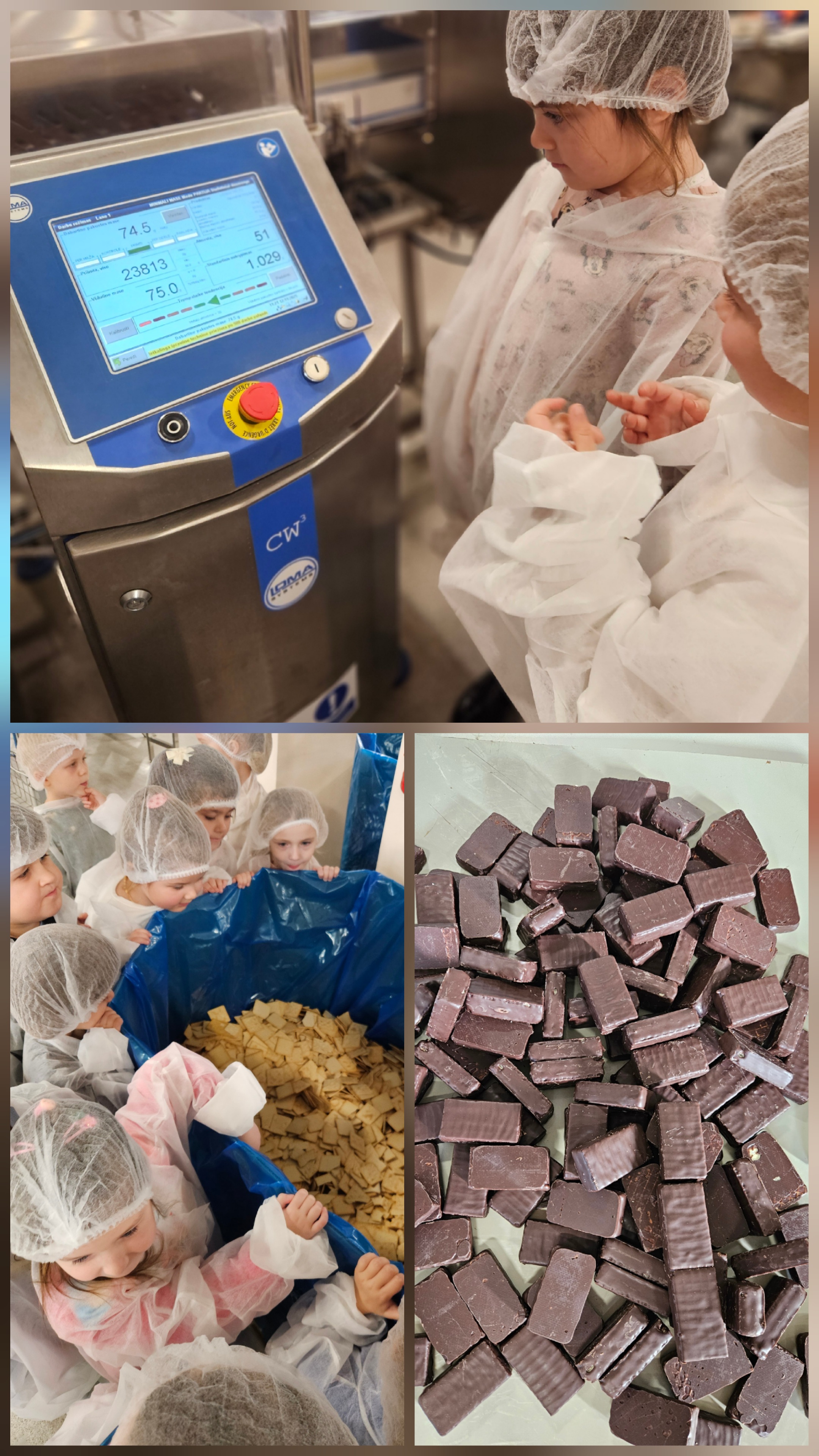 | Šių metų lapkričio 12 dieną grupės „Zuikučiai“ ugdytiniai lankėsi „Vilniaus Pergalė“ saldainių fabrike. Tikslas: Išsiaiškinti, kokius matematinius veiksmus galima atlikti su saldainiais. Uždavinys: 1. Lyginti saldumynus pagal kiekį: vienas, daug, mažai. 2. Lyginti pagal ilgį, svorį. 3. Mokytis veikti komandoje, dalintis, suvaldyti emocijas. Šios savaitės tema grupėje „Zuikučiai“: „Ką galime išmatuoti aplinkoje?“, todėl dar prieš kelionę vaikai išsikėlė tikslą išsiaiškinti, kokius matematinius veiksmus galima atlikti su saldumynais. Vaikai susipažino su „Vilniaus Pergalė“ saldainių fabriko istorija, stebėjo įvairius gamybos etapus. Labai patiko sverti saldainius, lyginti, matuoti, sužinojo, ką reiškia dalintis su draugu. Vaikai mokėsi bendrauti ir bendradarbiauti, dirbti grupėje, suvaldyti emocijas. Žaisminga, nekasdieniška patirtinė veikla vaikams suteikė daug džiaugsmo.IU mokytoja R. Daiginienė |