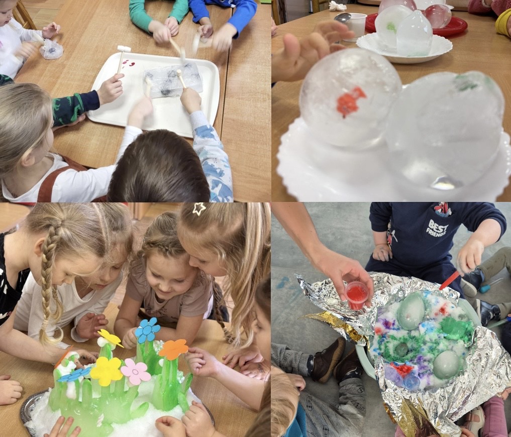 Veiklų tikslas – tyrinėti sniegą ir ledo galimybes bei patirti žiemos džiaugsmus lauke ir grupėje. Įspūdinga žiema ir gausus sniego kiekis už lango leido įgyvendinti visus užsibrėžtus tikslus. Visose grupėse buvo organizuotos patiriamosios STEAM veiklos, atlikti eksperimentai su sniegu ir ledu. Vaikai ieškojo lede įšalusių gyvūnų figūrėlių, stebėjo, skaičiavo, lygino spalvotus ledo kubelius. Parsinešę sniego į grupę, jie piešė ant jo ir džiaugėsi žiemą „pražydusia“ ledo gėlių pieva. Žaismingose patiriamosiose veiklose vaikai lavino smulkiąją motoriką, matavimo ir skaičiavimo įgūdžius, meninius gebėjimus, sakytinę kalbą, dėmesio koncentraciją bei pastabumą. Ikimokyklinio ugdymo mokytojos: D. Terleckienė, R. Daiginienė |